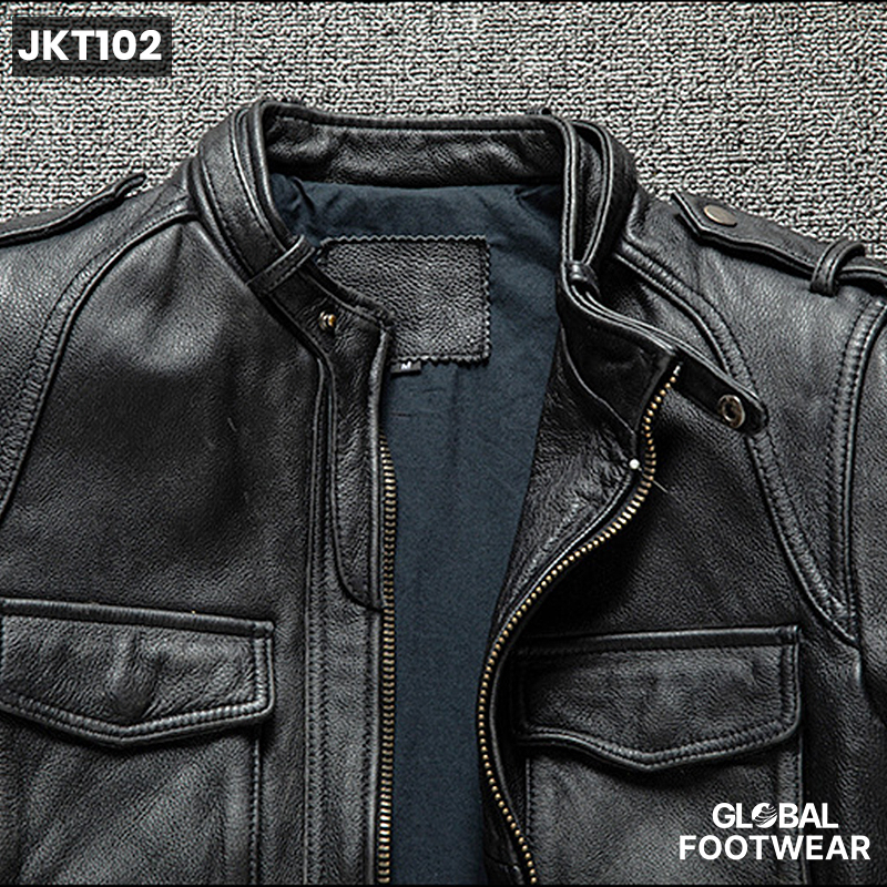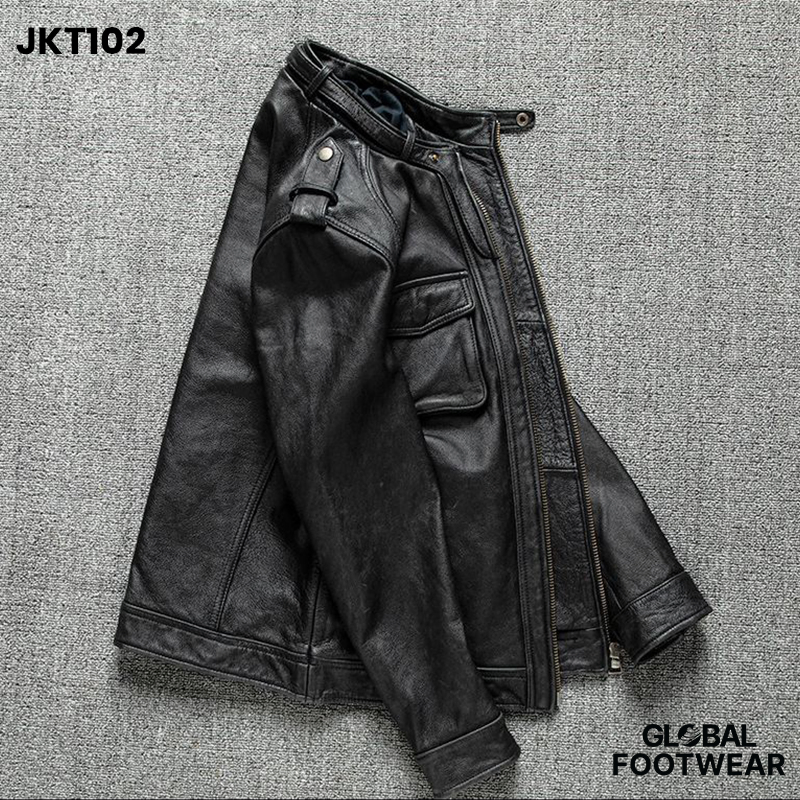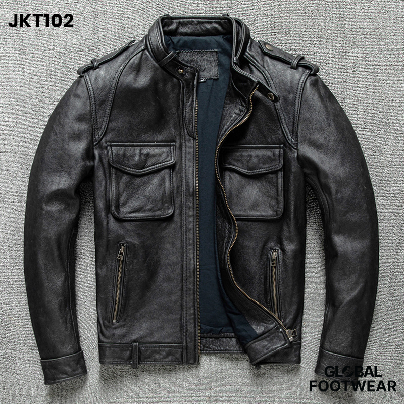 Motorcycle Retro First Layer Cowhide Genuine Leather Jacket