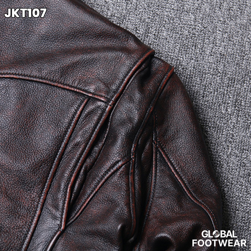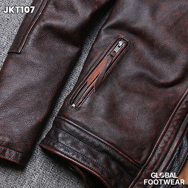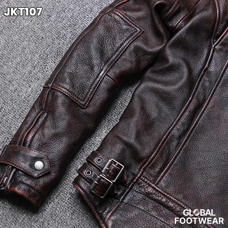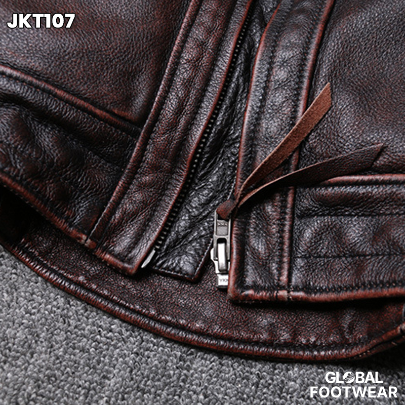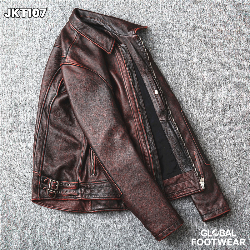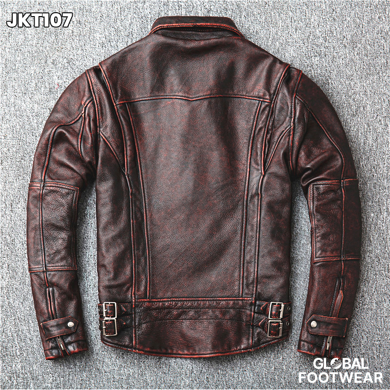 Motorcycle Retro First Layer Cowhide Genuine Leather Jacket