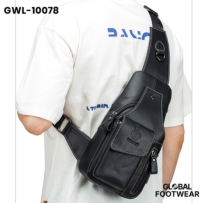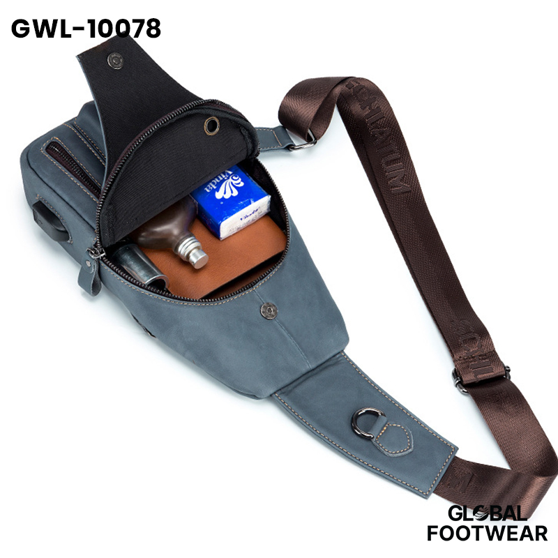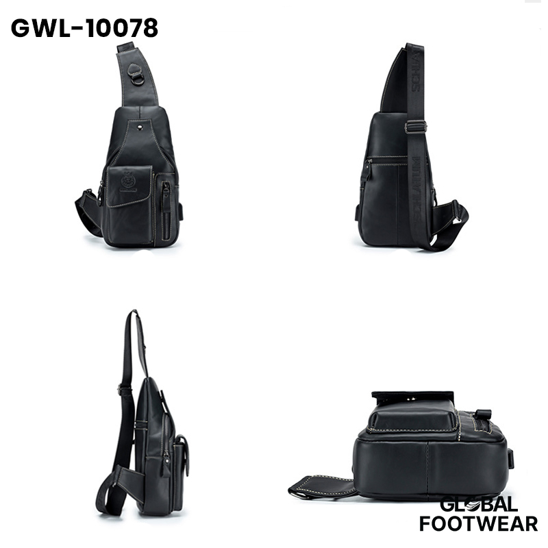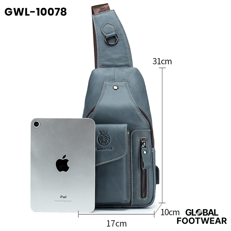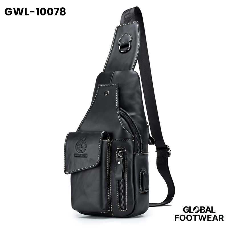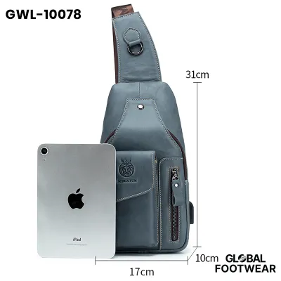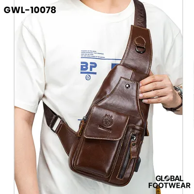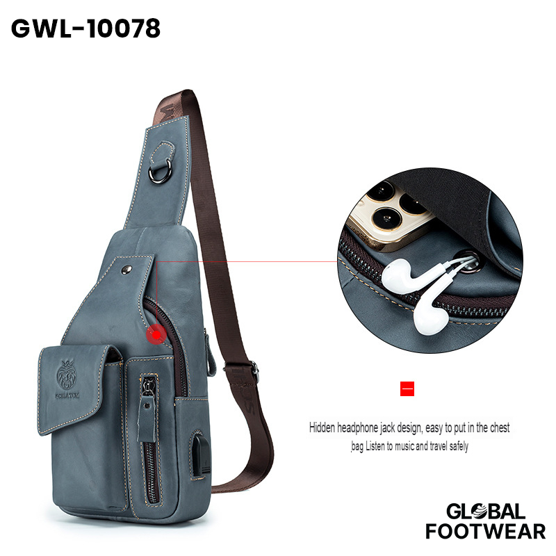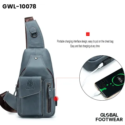 Chest Bag Men's Genuine Leather USB Phone Bag