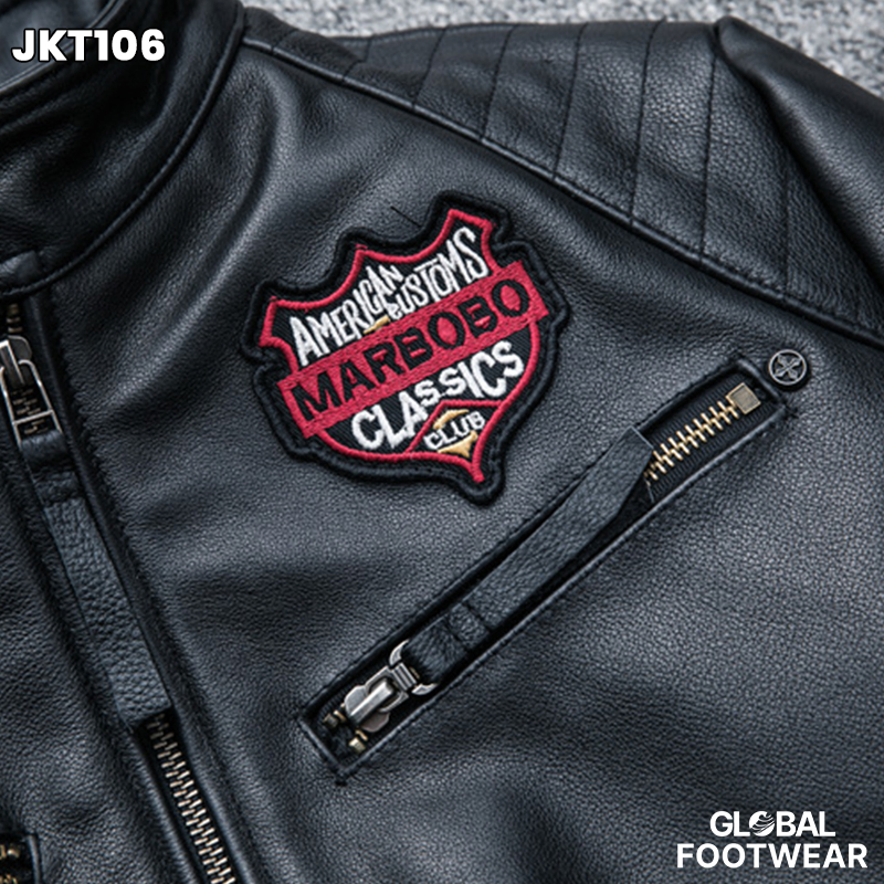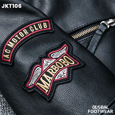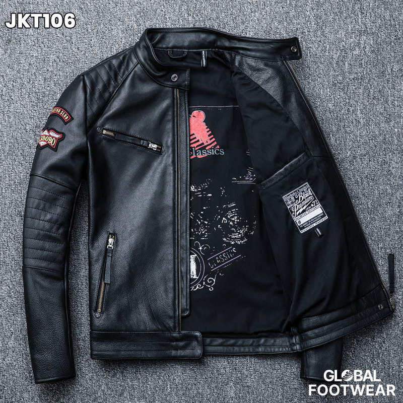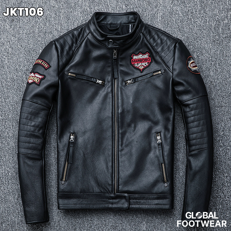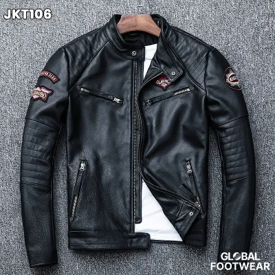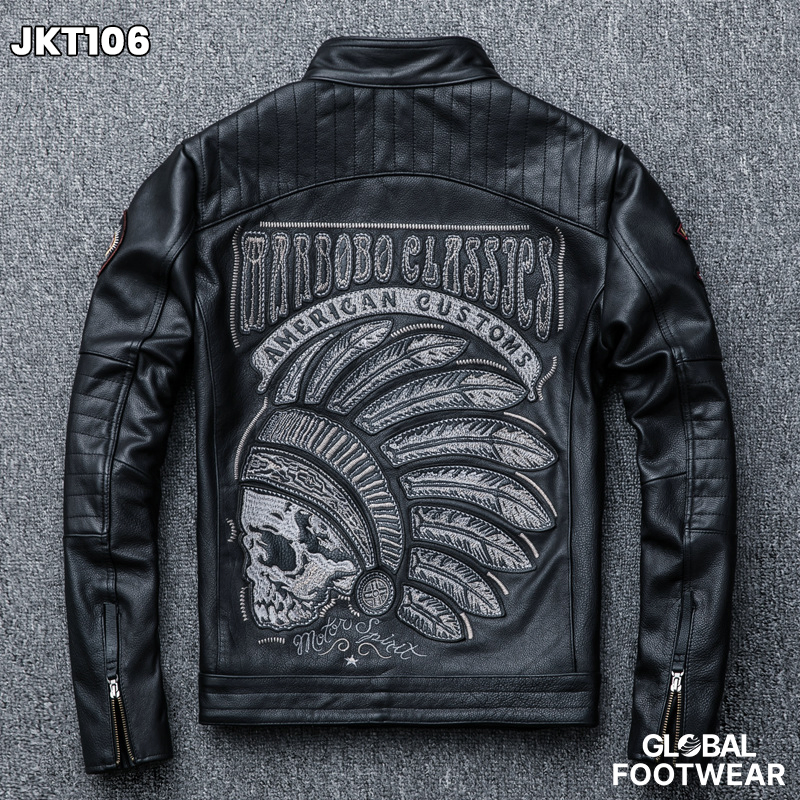 Embroidery motorcycle leather coat cowhide men's jacket