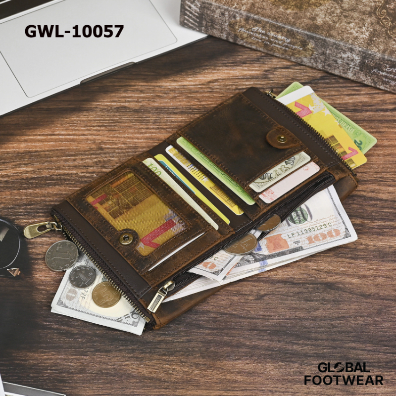 Crazy Horse Leather Vintage Style Strap Anti-Theft Wallet