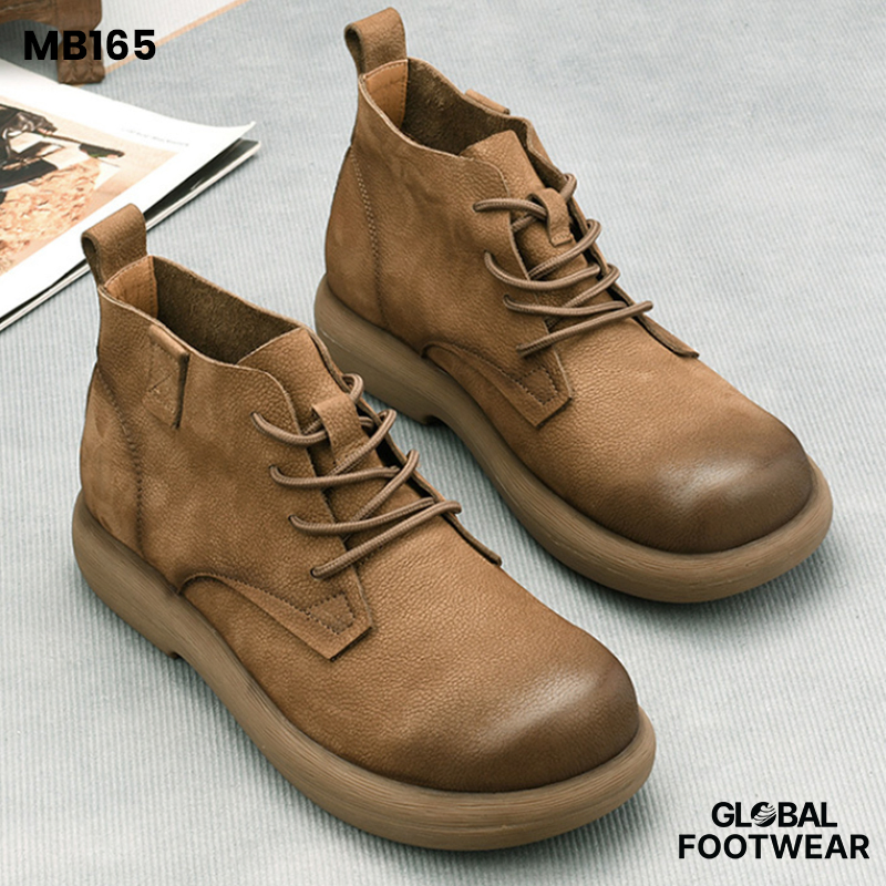Fleece-lined Thick Heel Retro Leather Martin Boots