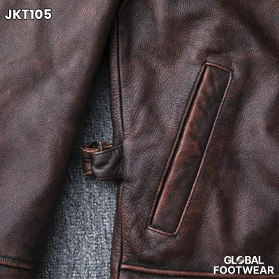 Ameikaji vintage first layer pure cowhide leather men's jacket
