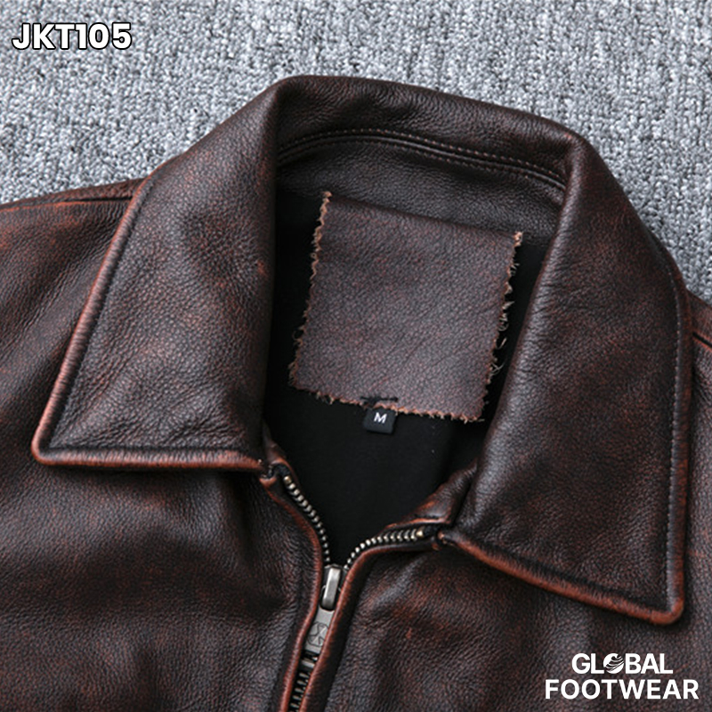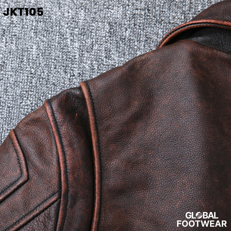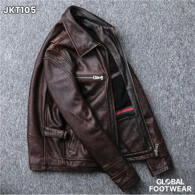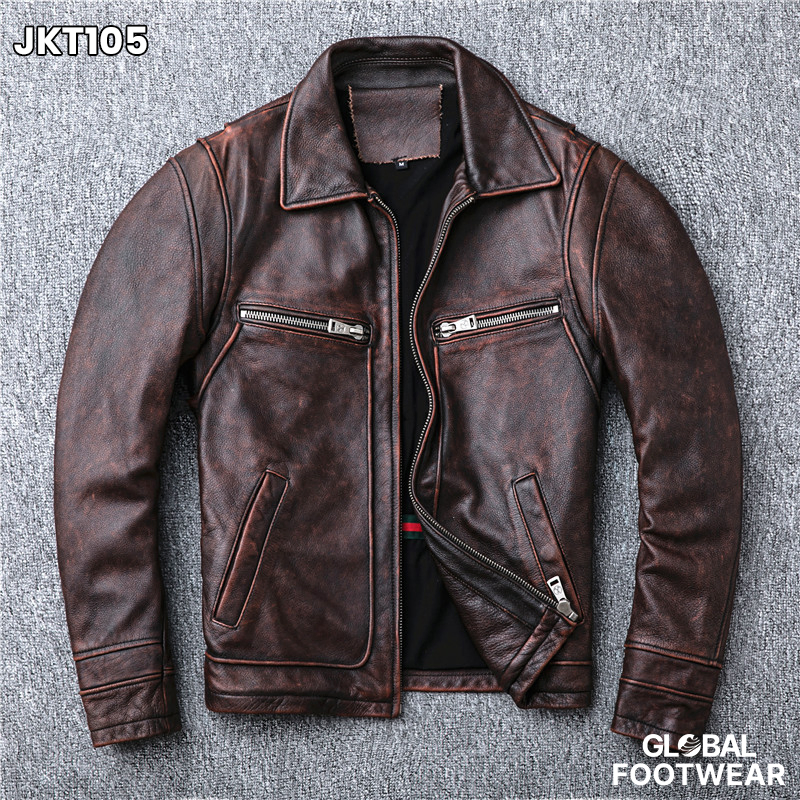 Motorcycle Retro First Layer Cowhide Genuine Leather Jacket