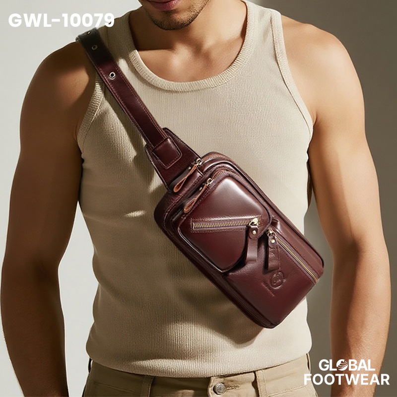 Chest Bag Men's Genuine Leather USB Phone Bag