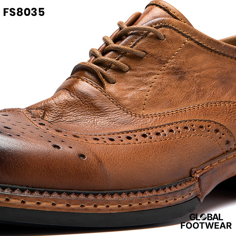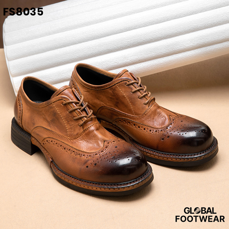 Vintage British Low-Top Genuine Leather Round Toe Derby Formal Shoes